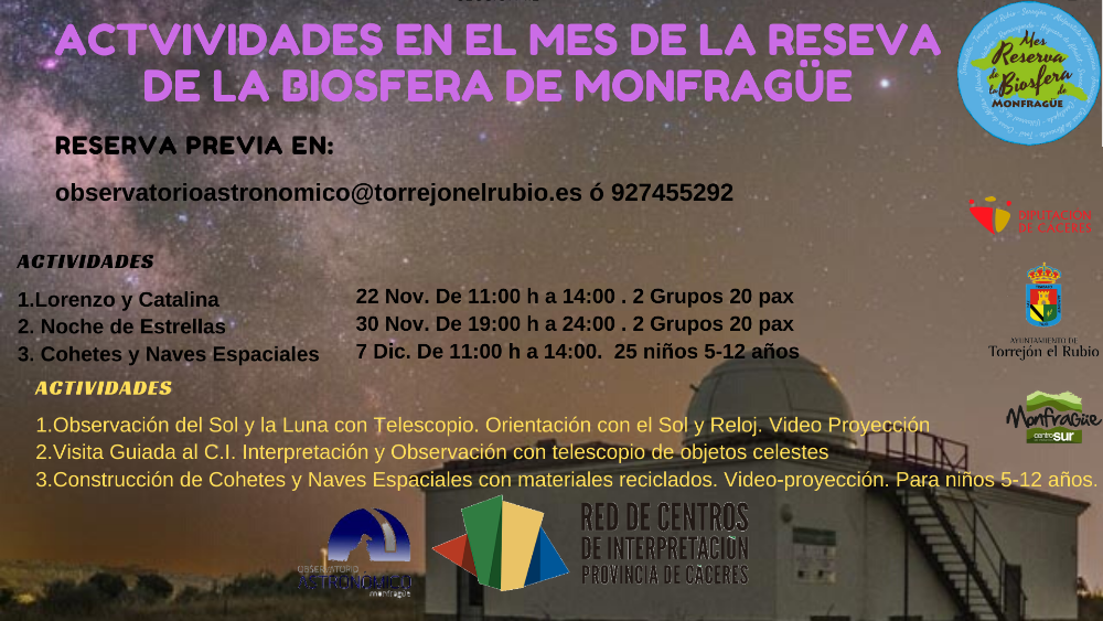 ACTIVIDADES REALIZADAS EN 2019 Actividades realizadas en el Observatorio Astronómico de Monfragüe en 2019 (Pincha en las imágenes para ampliarlas) Galería imágenes