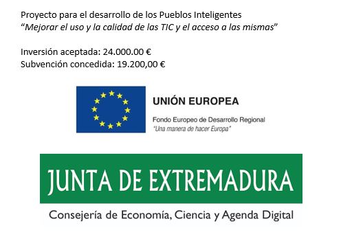 Subvención concedida al Ayuntamiento con fondos de la Unión Europea y Junta de Extremadura - Proyecto para el desarrollo de los Pueblos Inteligentes “Mejorar el uso y la Calidad de las TIC y el acceso a las mismas”.